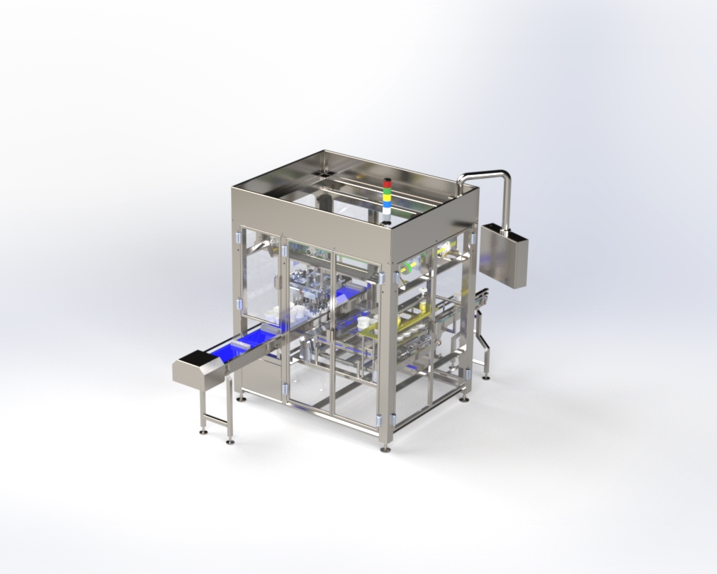 Using high-speed Delta or 6-Axis robots, the system picks products from the infeed conveyor and “toploads” them into pre-formed cases or trays. This “Pick & Place” method allows for complex packing patterns and multiple layers.
